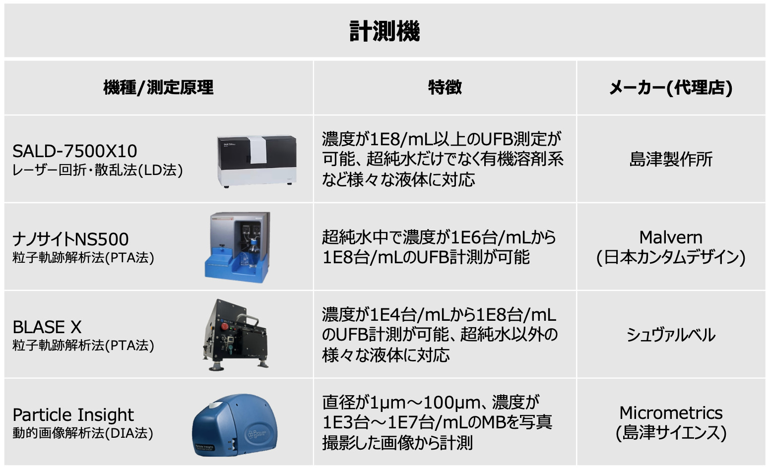 FBIAラボ設置計測器は以下の4種です。