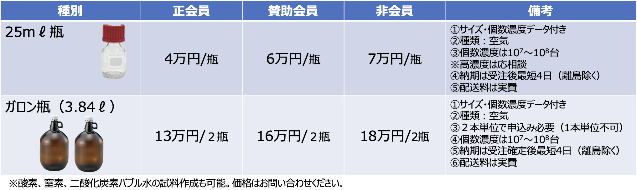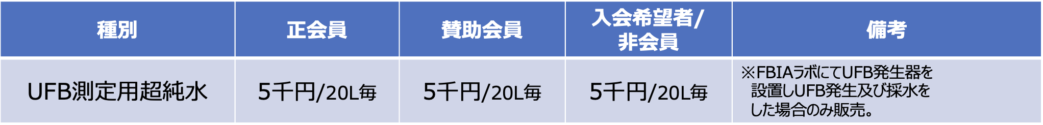 当ラボにてUFB発生器を設置し、UFB発生及び採水を会員/非会員がご自身で行う場合のみ、UFB測定用原水を販売いたします。